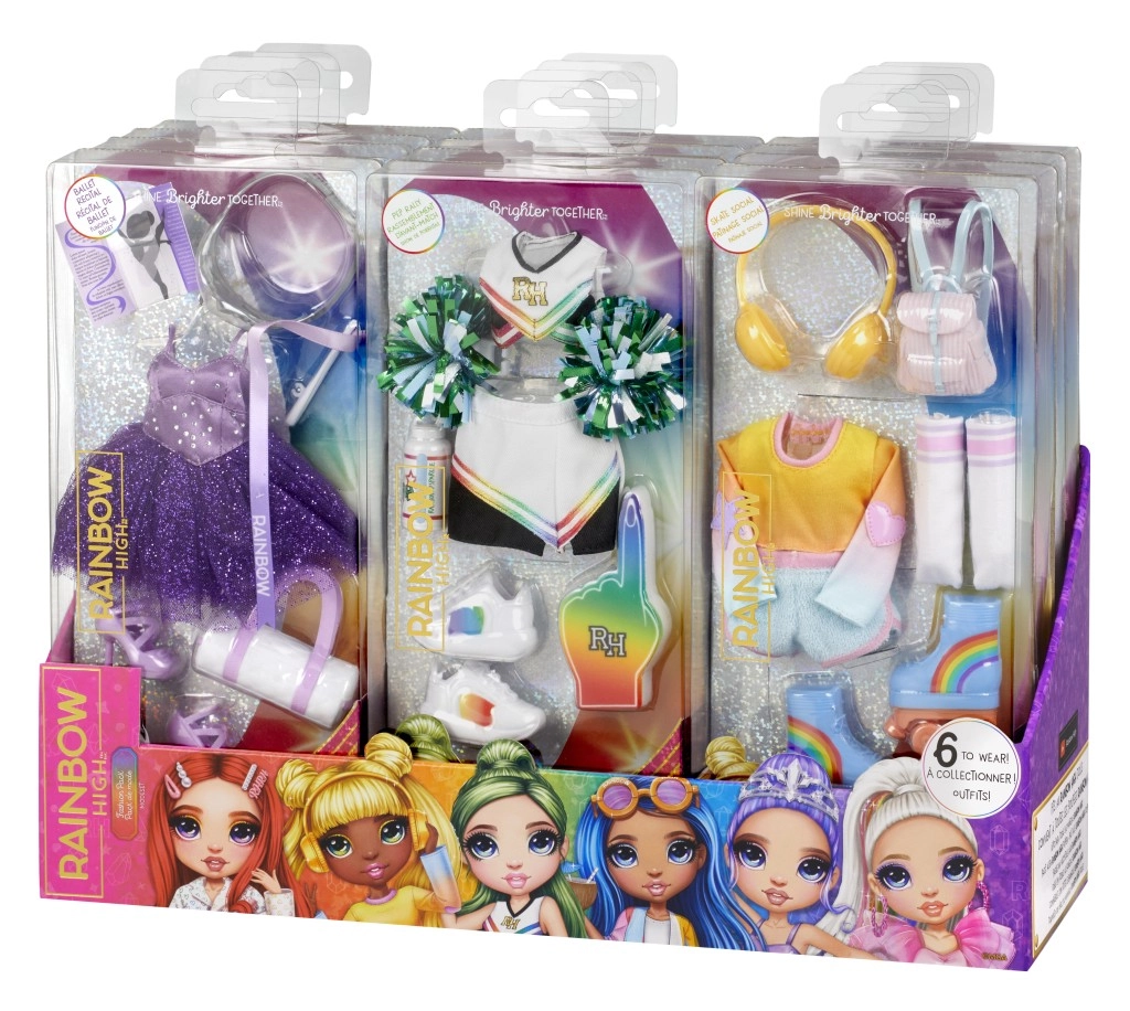 A kifinomult artikuláció lehetővé teszi a valósághű pózolást – a Rainbow High vagy Shadow High baba könnyedén bemutat egy divatbemutatót, iskolai jeleneteket vagy fotókat a gyűjteményhez. Némelyik kiadás második szetteket, cserélhető ruhákat, cipőket és ékszereket is tartalmaz; gyakran állvány és hajkefe is jár hozzájuk. A gazdag kiegészítők és a mix & match kombinációk egyedi stílust biztosítanak minden karakternek.