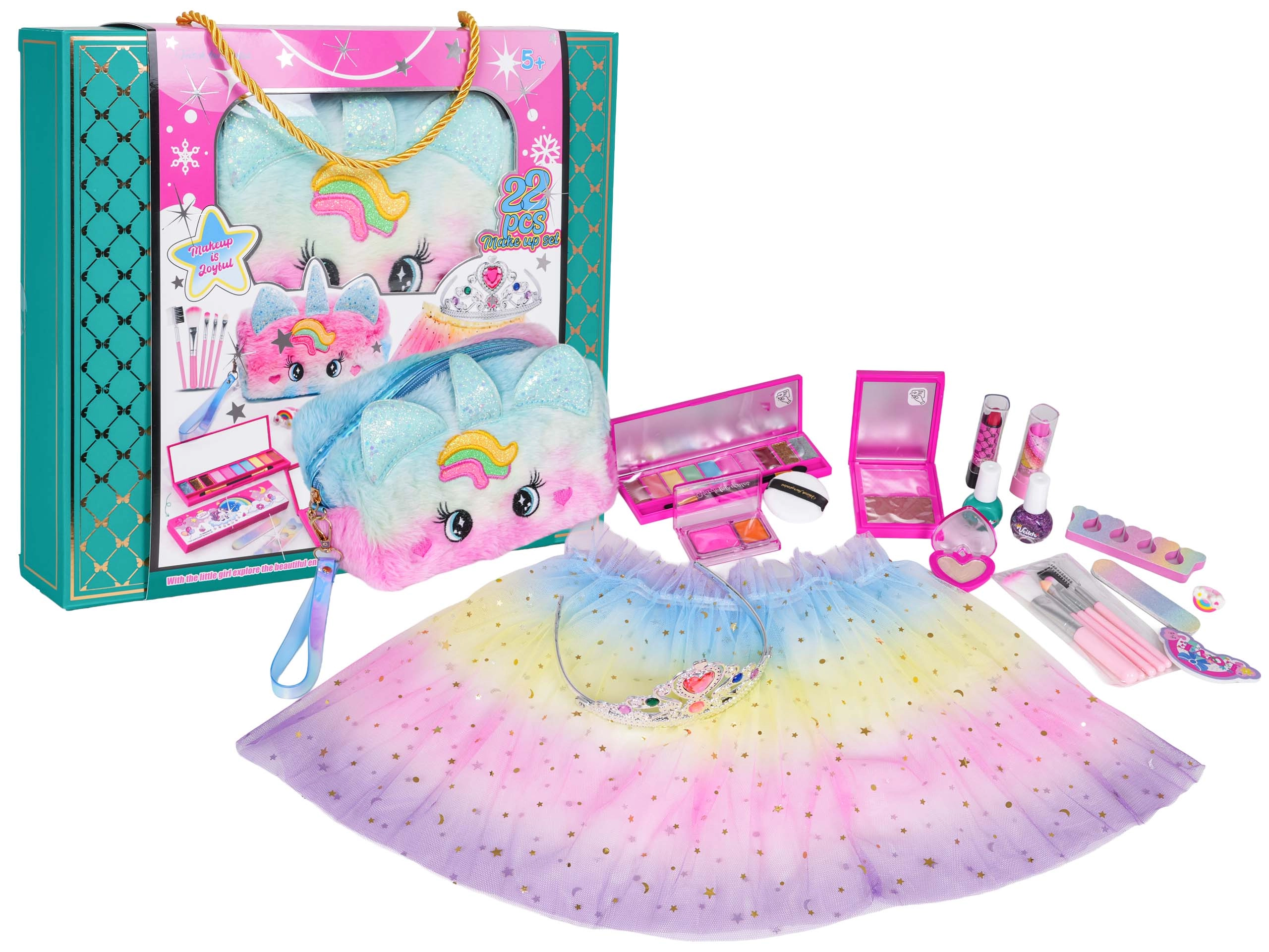 A kozmetikai bőröndök, fésülködő asztalok és fodrász szettek tartalma lehet fésű, kefe, hajpánt, csat, hajcsavaró, gyerek hajszárító, hajvasaló vagy hajsütővas (játék), biztonságos tükrök és gazdag kiegészítők. A gyerek smink általában nem mérgező, lemosható és bőrbarát; a vízbázisú körömlakkok aceton nélkül, könnyen lemoshatók. Választhatók strapabíró műanyag és fa készletek, kompakt utazó bőröndök és nagyobb kozmetikai asztalok a teljes értékű szerepjátékhoz.