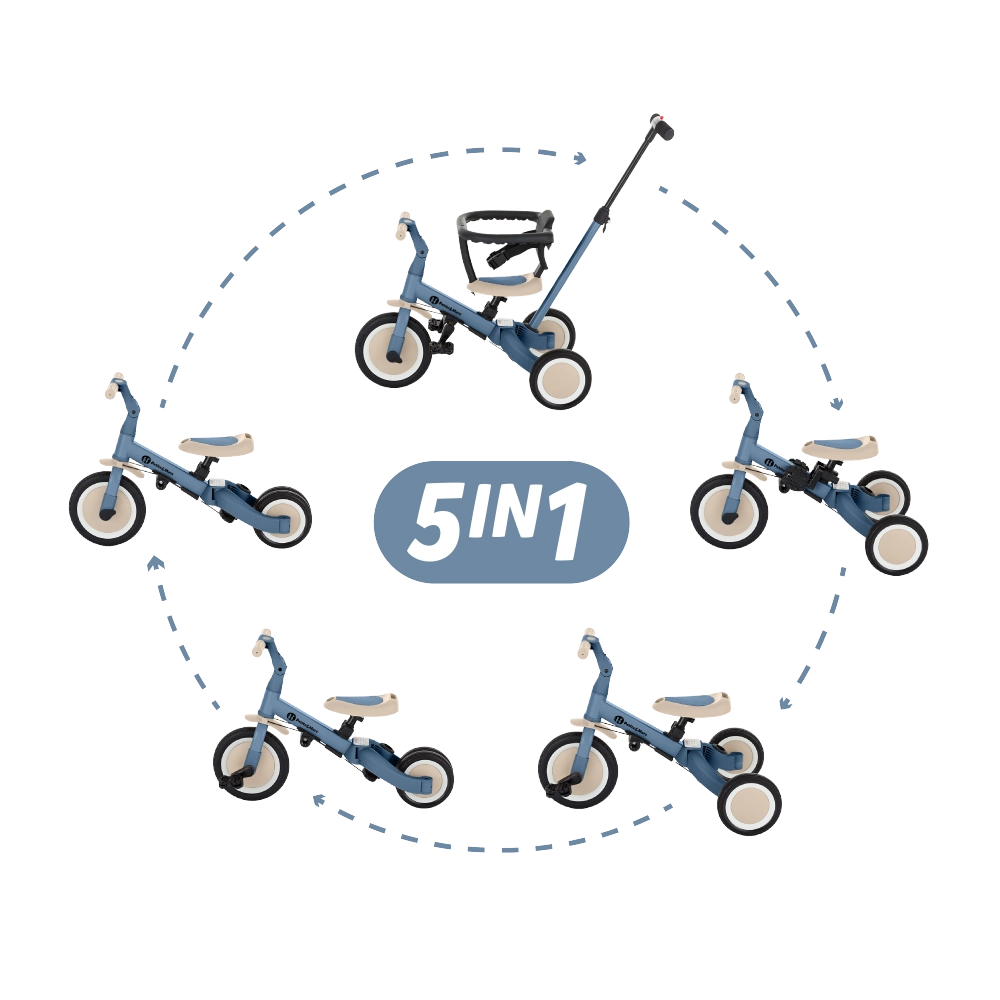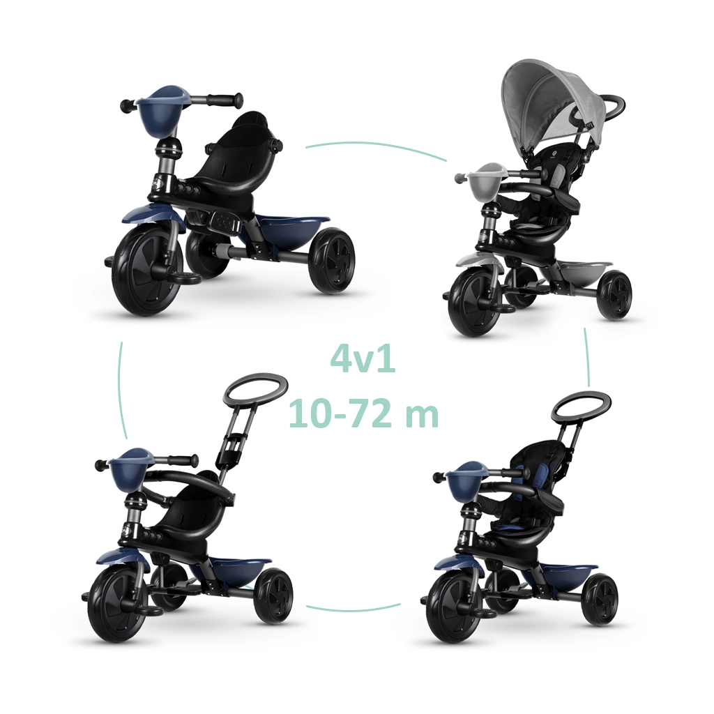 A növekedést követő 2 az 1-ben és 3 az 1-ben triciklik könnyen alkalmazkodnak a gyermek életkorához és magasságához – a tolókarral segített üzemmódtól a teljesen önálló pedálos háromkerekűig. Az állítható kormány, a magasságban állítható ergonomikus ülés, a felhajtható lábtartók és a pozícionálható napellenző gondoskodnak a kényelemről és védelemről minden kiruccanáson. Az EVA habkerekek, a gumírozott vagy felfújható kerekek csendes futást és jó tapadást adnak, a csúszásgátló pedálok és a puha markolatok pedig biztos fogást; a kosár, a sárvédők és a csengő is alapfelszereltség.