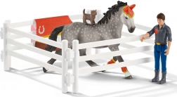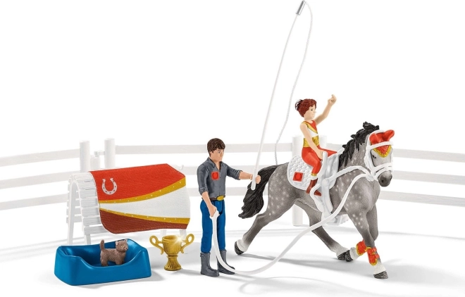 A SCHLEICH Horse Club Mia voltizsálás-edzőkészlet hiteles istállóélményt nyújt a gyerekeknek. A valósághű részleteknek, a levehető kiegészítőknek és a mozgatható figuráknak köszönhetően a kis lovasok pózokat próbálhatnak, versenyre készülhetnek, és úgy gondoskodhatnak a lóról, mint a valóságban.