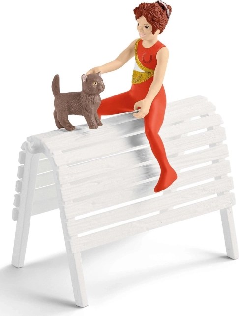 Fedezd fel a lovak világát egy játékkészlettel, amely valósághű voltizsálás-edzést kínál a gyerekeknek. A csomagban Mia és Tom edző figurái, versenyló levehető nyereggel és kantárral, karám a biztonságos edzéshez, trófea a győztesnek és egy aranyos kiscica kosárral található. A figurák mozgatható végtagokkal rendelkeznek az még élethűbb játékért és a fantázia fejlesztéséért.