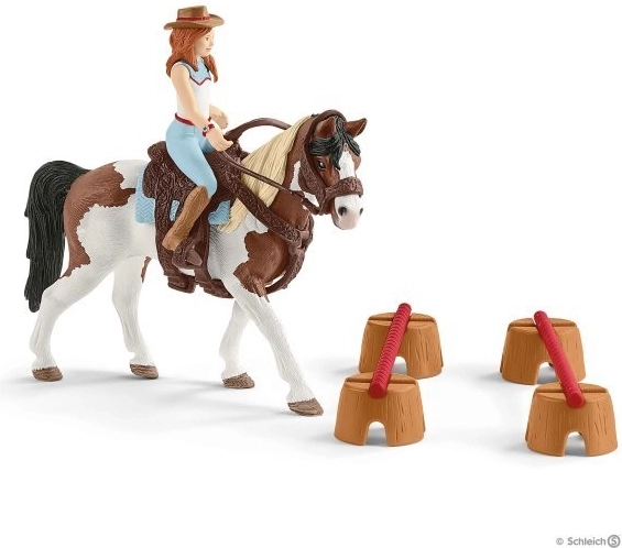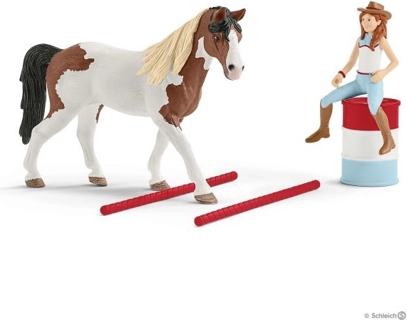 - Hannah figura mozgatható karokkal, ló (kanca), levehető nyereg és kantár, hordók, akadályok és kiegészítők