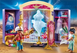 Fedezd fel a Kelet varázslatos világát a PLAYMOBIL Magic játékszettel! A kompakt készletben megtalálod a herceget, a hercegnőt és a titokzatos varázslámpát dzsinnel, amely fantáziadús történetekre inspirál. Mindent könnyedén elhelyezhetsz a fogantyús, zárható dobozban – ideális utazáshoz. 4 éves kortól ajánlott.