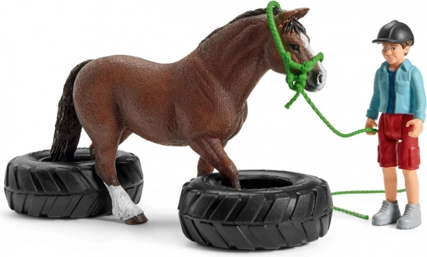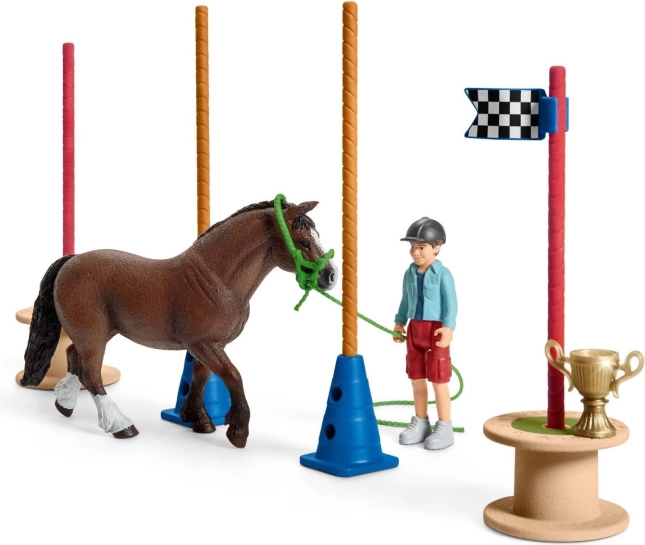 Tartalmaz egy walesi pónit, egy fiú figurát, akadályokat, matricás ívet és egyebeket. Ideális gyakorláshoz és versenyjelenetekhez.