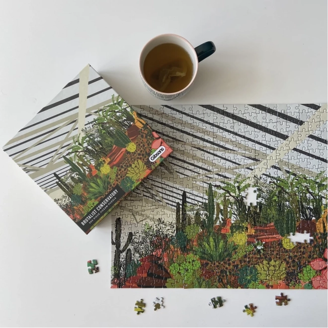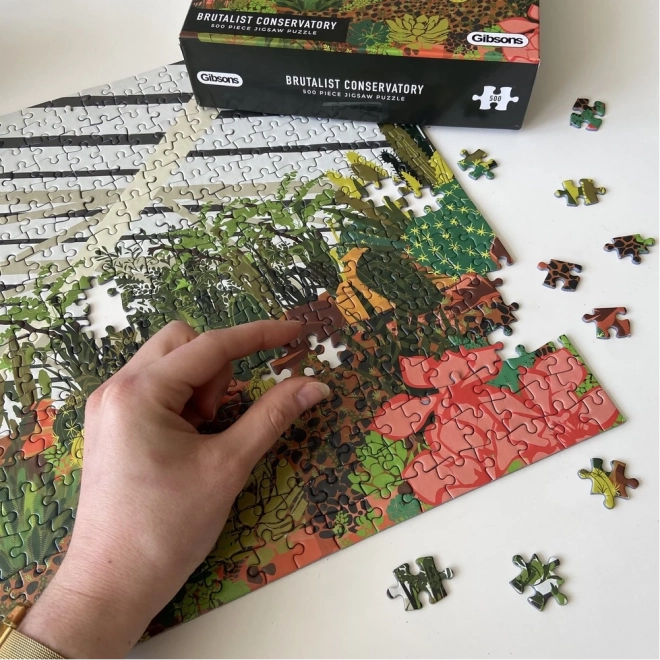 Fedezze fel a városi dzsungel varázsát a GIBSONS kirakóval. Az illusztráció a londoni Barbican télikertjét ábrázolja trópusi növényekkel, lombos fákkal és kaktuszokkal. Az 500 darabos kirakó pihentető élményt, minőségi kivitelezést és csomagolt mintaképet kínál a könnyebb kirakáshoz.