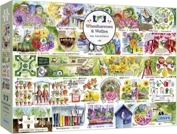 Élvezze a hosszú, pihentető órákat a minőségi GIBSONS kirakóval. A falusi udvar talicskákkal és gumicsizmákkal részletgazdag illusztrációt és kellemes kihívást kínál. 1000 darab és összeállítva kb. 68 × 49 cm. A feliratok a kirakón angol nyelvűek.
