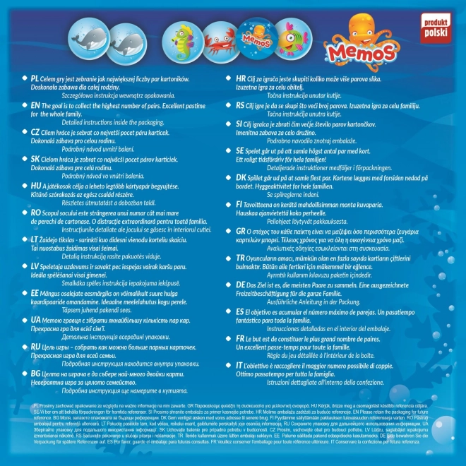 A TREFL Pexeso Víz Alatti Világ szerettek körében népszerű játékot hozza el egyedi kerek kártyákkal, amelyek az óceánok és tengerek lakóit ábrázolják. A játékosok igyekeznek minél gyorsabban megtalálni az azonos képek párjait, így nemcsak sok szórakozásban részesülnek, de fejlesztik memóriájukat is.