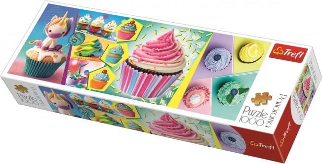 A TREFL Színes sütik panorámás puzzle örömet és színeket hoz otthonába. Az 1000 darab összeillesztésével egy lenyűgöző kép jön létre, tele pasztell sütikkel, amely minden helyiség dísze lesz.