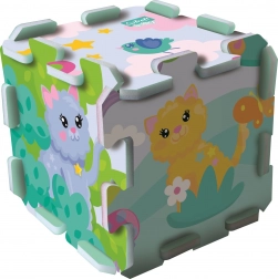 Aranyos TREFL Huncut kiscicák habszivacs kirakó biztonságos játszófelületet teremt a legkisebbeknek. Az 1,5 cm vastag elemek puhák és könnyűek, összeállítva kb. 117 × 60 cm felületet kapunk. Az anyag mosható és egészségre ártalmatlan, a kirakó könnyen tárolható, és 2 éves kortól ajánlott.