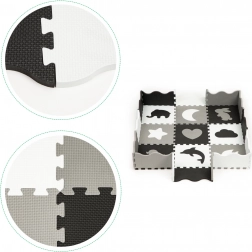 A habszőnyeg lehetővé teszi a gyermekek számára a biztonságos és puha játékot a padlón. A 'kerítésbe' való összerakás nemcsak a gyermeket védi, hanem megakadályozza a játékok leesését is.