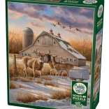 Fedezze fel a téli táj varázsát szarvasokkal, csűrrel és repülő ludakkal – a részletgazdag illusztrációból lenyűgöző motívum áll össze, amelyet a természet és a vidék rajongói egyaránt imádni fognak. A COBBLE HILL kirakók precíz minőségükről és egyedi stancolásukról híresek, amelyek páratlan kirakóélményt nyújtanak.