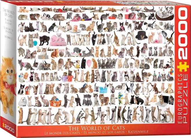 Élvezze a macskák világát nagy méretben az EUROGRAPHICS kirakóval. A 2000 darabnak, a szabálytalan stancolásnak és a szokatlan formáknak köszönhetően az összerakás magasabb nehézségi szintet és hosszú órákon át tartó szórakozást kínál. Összerakva a kép mérete körülbelül 99,7 × 67,6 cm.