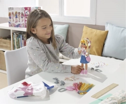 Az előrenyomott szabásmintákkal ellátott anyag és a praktikus eszközök lehetővé teszik a lezser modellek tervezését, váltogatását és kombinálását minden alkalomra. Ideális 6 éves kortól fiatal stylistáknak.