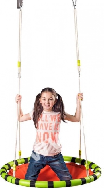 Élvezze a pihenést és a szórakozást a kertben a WOODY fészekhintával. A nagy, 103 cm átmérő bőséges helyet biztosít a kényelmes üléshez a vászon ülőfelületen, miközben a szerkezeten lévő habszivacs védőborítás növeli a biztonságot hintázás közben. A hinta kültéri használatra készült, és könnyen felakasztható a függesztőköteleken lévő fém karikák segítségével.