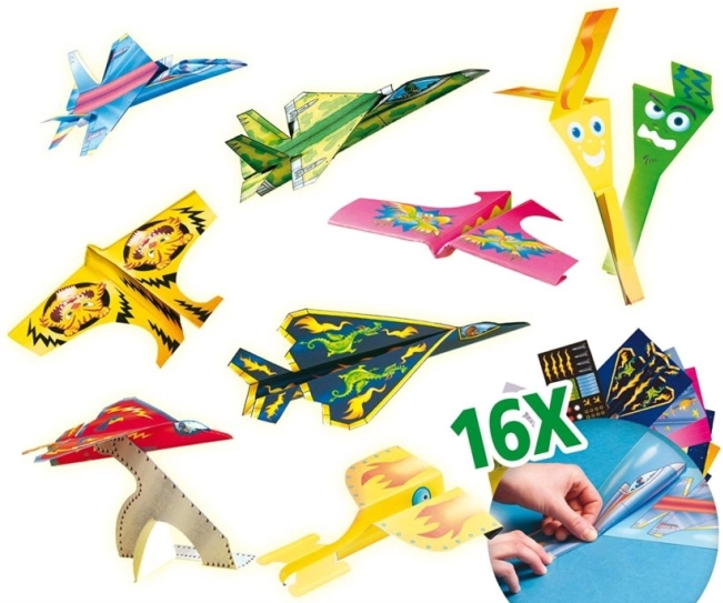- Papírlapok akár 16 repülő készítéséhez, díszítő matricák