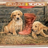 A „Kiskutyák régi cipővel” című, Rosemary Millette művésznő által készített kép rendkívül élettelinek hat, és minden kutyabarátot megörvendeztet. A minőségi nyomtatásnak és a precíz kivitelezésnek köszönhetően az összeállítás kellemes, a végeredmény pedig dekorációként is remekül mutat.
