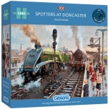 Fedezze fel a brit vasúttörténet varázsát a GIBSONS „Bámészkodók Doncasterben” kirakóval. A jelenet 1961 peronjára repíti, ahol a Falcon gőzmozdony áll a figyelem középpontjában. Gondosan megválasztott színei és részletei révén az összeállítás gördülékeny, az időtöltés pedig igazán kellemes.