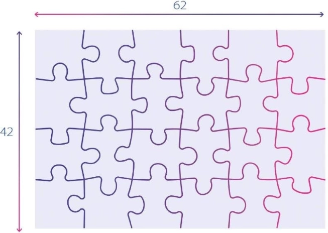 Az összerakott puzzle mérete kb. 62 x 42 cm, ami kényelmes padlón való kirakásra alkalmas. Ez a fajta puzzle remek eszköz a gyerekek képességeinek fejlesztéséhez, és szórakoztató módja lehet a motorikus képességek tanulásának.