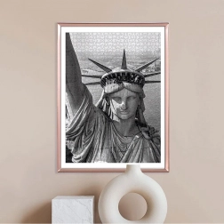 A Szabadság-szobor fejének és koronájának részletgazdag közelképe a kontrasztnak és a precíz nyomtatásnak köszönhetően igazán kiemelkedik – ideális a design és a fotózás szerelmeseinek.