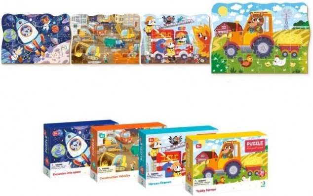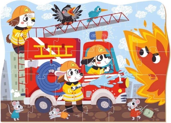 Szórakoztató DODO gyerekpuzzle hős tűzoltók motívummal a Közlekedés sorozatból, amely örömet szerez a 3 éves kortól kis építőknek. 30 darabot tartalmaz, kontúros kerettel a könnyebb kirakáshoz, és kirakva 27 × 20 cm méretű. Összekapcsolható más képekkel ugyanebből a sorozatból, így nagyobb jelenet hozható létre.