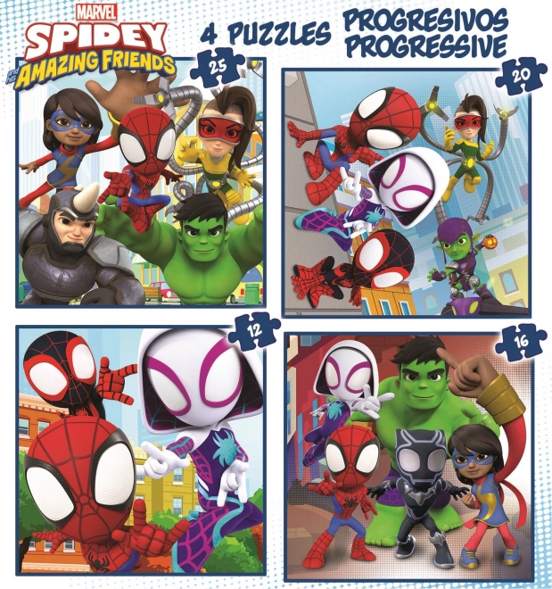 Élvezd a szórakozást a kis PÓKEMBER-rajongóknak készült, progresszív 4 az 1-ben kirakóval. A készlet négy kirakót tartalmaz különböző nehézségi szintekkel (12, 16, 20 és 25 darab), így a gyerekek fokozatosan fejleszthetik képességeiket. Minden puzzle mérete kb. 16 × 16 cm, és a darabszám növekedésével a darabok mérete csökken, ami támogatja a finommotorikát és a türelmet. Ideális óvodásoknak, fokozatos nehézség és kedvelt szereplők: PÓKEMBER és barátai.