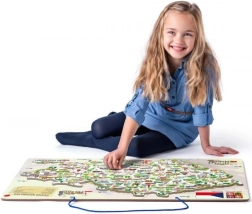 A WOODY márka mágneses Csehország-térképe ideális eszköz a gyerekek földrajzi ismereteinek fejlesztésére. A különálló járásokat és jellegzetességeiket ábrázoló mágneses elemeknek köszönhetően a gyerekek megtanulnak eligazodni a térképen, felismerik a szomszédos területeket, és megjegyzik a járások székhelyeit. A vékony piros vonal pontosan kijelöli a határokat, megkönnyítve az összeillesztést és erősítve a helyes párosítást.