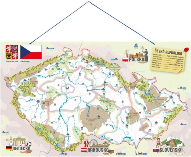 Fedezze fel a gyerekeknek szóló szórakoztató és oktató eszközt – a 3 az 1-ben mágneses Csehország-térképet, amely ötvözi a ismeretterjesztő kirakót, az iskolai segédeszközt és a társasjátékot. A gyerekek játékos formában sajátítják el a járásokat és azok városait, megismerik a folyókat és hegységeket, és a rajzoknak köszönhetően könnyen megértik, mi jellemző az egyes területekre. Része egy szórakoztató játék is, amely figyelem- és észlelésfejlesztést nyújt.