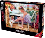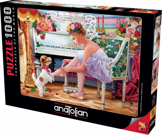 Élvezze a gyönyörű Balerina és kölyökkutyája puzzle kirakását 1000 darabbal, az Anatolian márkától. A csomag tartalmaz egy praktikus állványt is, ahova az előlapként szolgáló dobozfedelet helyezheti, megkönnyítve ezzel a kirakást.