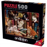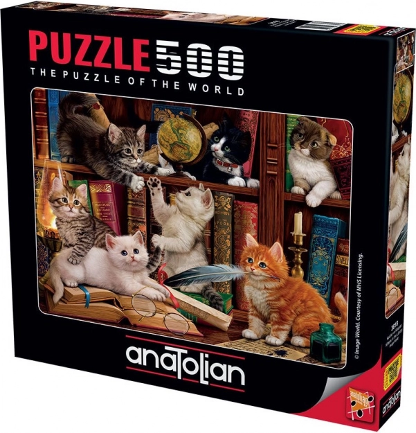 Puzzle Cicák a könyvtárban macskabarátok és puzzle-rajongók számára, könyvtár illattal. Tökéletes kikapcsolódás az egész család számára.