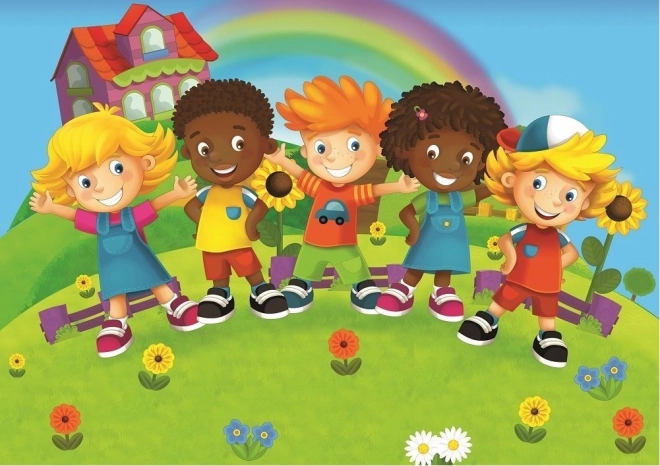 Fedezze fel a gyerekek témájú, szórakoztató puzzle-duót – ideális közös kirakózáshoz és a finommotorika fejlesztéséhez. A csomag két azonos méretű, de eltérő nehézségű képet tartalmaz – 12 darabos és 24 darabos. Minden készre rakott puzzle mérete megközelítőleg 34 × 24 cm.