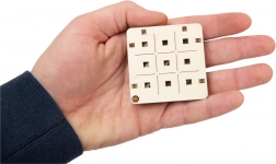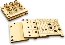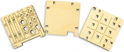 Fából készült 3D puzzle, amely összeállítás után zsebjátékként szolgál unalmas percek elütésére.