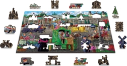 Ez a fa kirakó egy vonzó, nyüzsgő történelmi utcát ábrázol, és kétoldalas kivitelének köszönhetően dupla szórakozást nyújt – az előlapot a kép, a hátlapot pedig az ismétlődő minta és a formák alapján rakhatja ki. A lézerrel kiemelt részletek és az állatok, épületek, tárgyak alakját idéző különleges elemek új dimenziót adnak az élménynek.