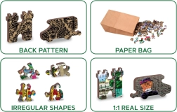 A szálkamentes, sima éleknek és a masszív, 3–4 mm vastag HDF lapnak köszönhetően a kirakó tartós és kellemes tapintású. Emellett környezetbarát – műanyag csomagolás nélkül, papírzacskóban és dobozban. A kényelmes rakáshoz külön nyomtatott minta is tartozik hozzá.