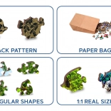 Különlegesen formázott elemek – köztük állat- és tárgymotívumok – precíz lézerrel kiemelt részletekkel, némelyikük pedig kis figuraként fel is állítható. A kirakó sorjamentes, sima élekre és hosszú élettartamra lett tervezve.