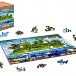 Fedezze fel a szórakozást és a kihívást ezzel a kétoldalas, 2 az 1-ben fa kirakóval egzotikus sziget témával. A lézerrel kivágott, egyedien formázott elemeknek köszönhetően – állatok és tárgyak alakjában – a kirakó magasabb nehézségi szintet, sima éleket és környezetbarát, műanyagmentes kivitelezést kínál.