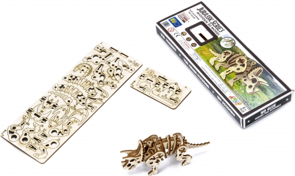A Jurassic sorozat Triceratops fa mechanikus építőkészlete az őslények szerelmeseinek készült. Összeállítás után a modell életre kel a kezedben, mozgatható a feje és a végtagjai. Ennek a modellnek az egyedi dizájnja és meglepő részletei garantálják, hogy az építés tele lesz szórakozással. A WOODEN CITY Jurassic Series Triceratops 3D puzzle kiváló ajándék minden dinoszaurusz-rajongónak. Nehézség: 2/5 (a Wooden City besorolása szerint). Becsült összeszerelési idő: 1 óra. Méretarány: 1:70. A WOODEN CITY fa 3D puzzle-ok részletgazdag, működő mechanikus modellek, amelyek ragasztó és szerszám nélkül állíthatók össze. Környezetbarát faanyagokból – minőségi nyír rétegelt lemezből – készülnek. A WOODEN CITY mechanikus fa puzzle-okkal órákon át szórakozhatsz az építés közben, és testközelből ismerheted meg az áttételeket, a gumimotorokat, a fogaskerekeket és más alkatrészeket.