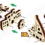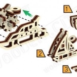 Ez a funkcionális mechanikus modell összeszereléséhez nem szükséges ragasztó vagy szerszám. Környezetbarát nyírfából készült rétegelt lemezből készül, és remek lehetőséget ad a fogaskerekek, gumimotorok és áttételek működésének megismerésére. A kidolgozott részleteknek és a természetes anyagból készült minőségi kivitelezésnek köszönhetően az építés valódi örömet nyújt.