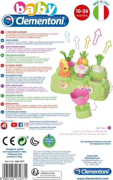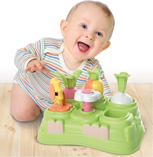 Ez az eredeti, legkisebbeknek szánt kert színes megjelenésével és intuitív tevékenységeivel nyűgöz le. A gyerekek formák szerint illesztik be a virágokat és zöldségeket, megtanulják felismerni a színeket, és gyakorolják a kéz–szem koordinációt. A minőségi kivitelezésnek köszönhetően a játék biztonságos, tartós és alkalmas a mindennapos használatra.