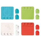 Minden szőnyegen négy pozíció található a kockák számára, így a gyerekek színes kombinációkat alkothatnak, építhetnek, rombolhatnak és újra felépíthetnek. A puha, tesztelt és ártalmatlan anyag biztonságos a gyermeki felfedezéshez, és könnyen karbantartható: a szőnyegek és a kockák mosogatógépben moshatók 30 °C-ig.