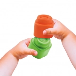 Nyolc puha kocka, amelyeket könnyű megfogni és a szőnyegek pozícióiba helyezni – ideális a finommotorika és a szem–kéz koordináció fejlesztéséhez.