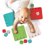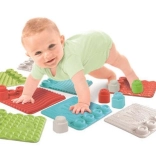 Négy színes szőnyeg eltérő domború mintákkal ösztönzi a gyerekeket az érintéses felfedezésre, a kúszásra és az első egyensúlyozó próbálkozásokra.