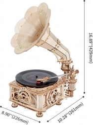A csomag része egy három dallal ellátott vinillemez: The Merry Gent (0:47), Memory Of A Dance (2:07) és The Giant Killers (1:27). Képes lejátszani 7" és 10" vinillemezeket. Az elemek lézerrel vannak vágva furnérból, és az összeszerelés a mellékelt útmutató segítségével történik.