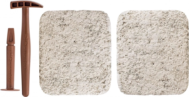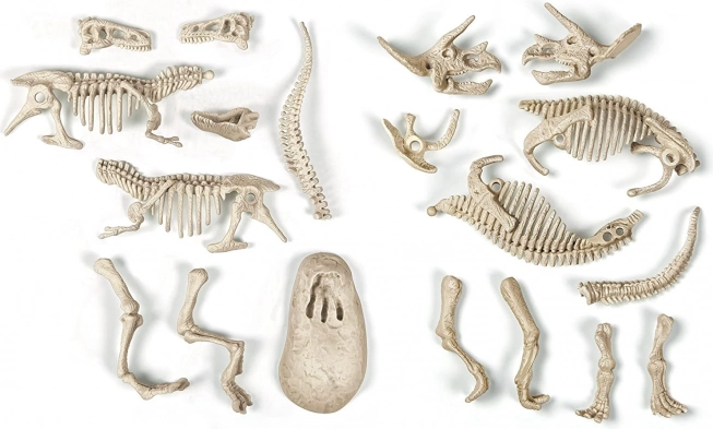 Használd a kalapácsot és a vésőt, óvatosan ásd ki a „fosszíliákat” a blokkból, majd állítsd össze a részletgazdag csontvázat. Remek módja a kézügyesség és a türelem fejlesztésének.