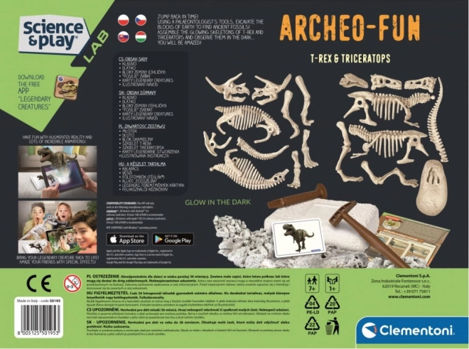 A csomag része egy illusztrált útmutató és oktatókártyák dinoszauruszokról és fosszíliákról. A kiterjesztett valóságot használó, ingyenes Legendary Creatures alkalmazásnak köszönhetően a csontvázak interaktív 3D modellekké válnak – tökéletes az ismeretszerzés és a játék kombinációjához. Kiváló választás 7 éves kortól azoknak a gyerekeknek, akik szeretik a dinoszauruszokat, a kísérleteket és a felfedezést.