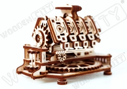 A fa 3D puzzle V8 motor egy működő mechanikus modell, amelyet a Forma–1-ben is használt motorok ihlettek. A nyitott felépítés lehetővé teszi a dugattyúk ritmikus mozgásának és a teljes mechanizmus működésének megfigyelését. Az összeépítés átgondolt, szórakoztató és egyben tanulságos – megértheti a fogaskerekek, az áttételek és a mechanikai kapcsolatok alapelveit.