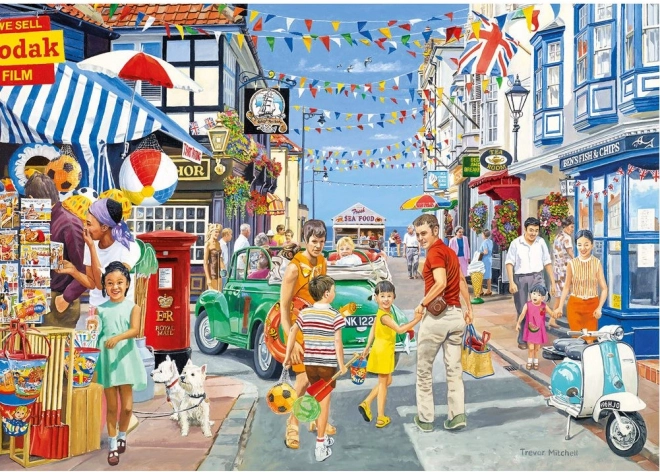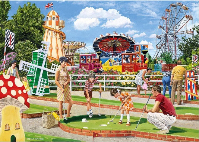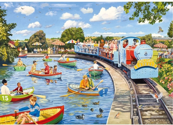 Ez a puzzle sorozat visszaadja a klasszikus vakációs helyszínek élő hangulatát, mindenféle vidámparkoktól a vidám strandzugokig.