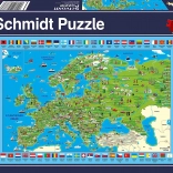 Fedezze fel Európát a SCHMIDT márka kirakójával: illusztrált Európa-térkép 500 darabbal, német nyelvű állam- és városnevekkel és áttekinthető országzászlókkal. Összeállítva a puzzle mérete körülbelül 48,1 × 34,1 cm – ideális tanuláshoz és szórakozáshoz.