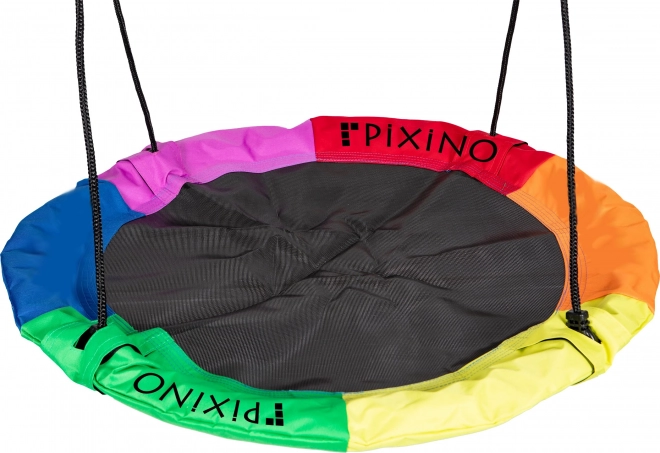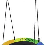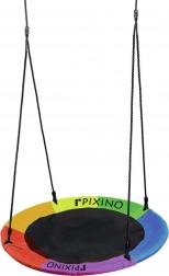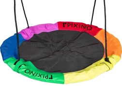 A PIXINO márkájú gólyafészek hintakör ideális kombinációja a szórakozásnak és a biztonságnak. A legfeljebb 150 kg teherbírás és a 110 cm-es ülőfelület miatt a nagyobb gyerekek is kedvelni fogják. A párnázott váz horganyzott anyagból készül, amely ellenáll az időjárási hatásoknak. A magasságában állítható kötelek megkönnyítik a szerelést és az igényekhez való igazítást. Tökéletes megoldás játszótérre vagy kertbe.