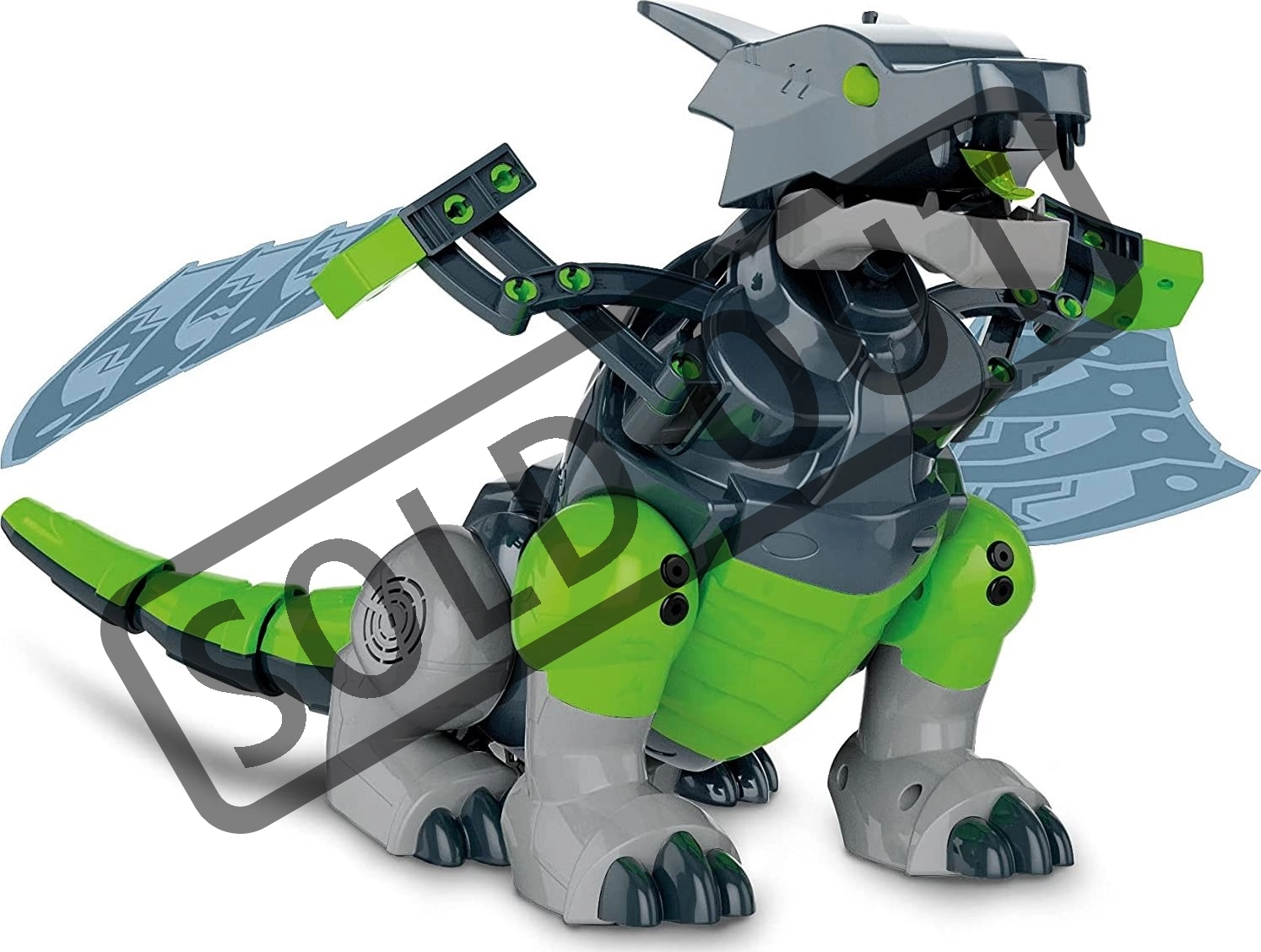 - Masszív felépítés: 96 elem, 3 motor (2 a szárnyakhoz és a szájhoz, 1 szervomotor a meghajtáshoz és a testízülethez).