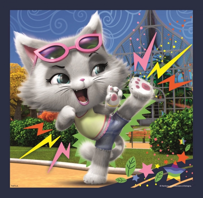 Fedezd fel a kirakók varázsát a népszerű 44 CATS mese hőseivel. A készlet három különböző puzzle-t tartalmaz, amelyekkel a gyerekek fejlesztik finommotorikájukat, a részletek észlelését és a türelmet. A különböző darabszám lehetővé teszi a nehézség szintjének igazítását a gyermek életkorához és tapasztalatához.